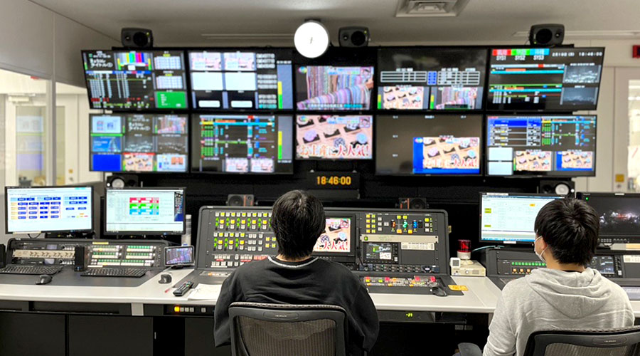 | マスター | 放送局の最重要施設・主調整室(マスターコントロールルーム)で、送出と監視を行なっています。 |